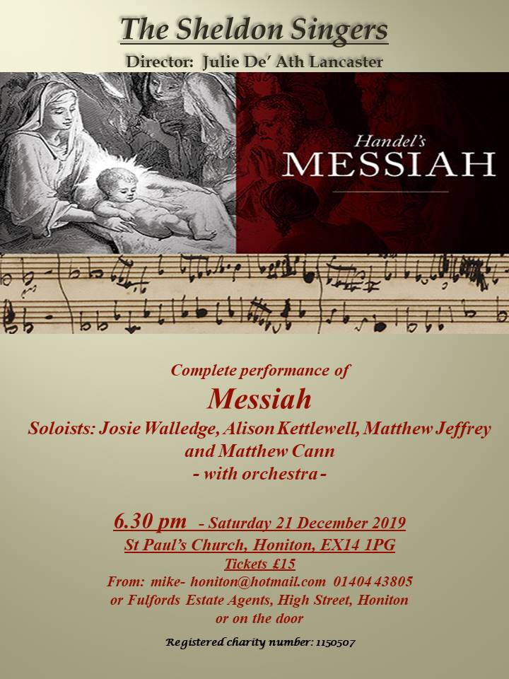 There are many people for whom Christmas wouldn’t be Christmas without hearing Handel’s Messiah, and I am one of them. I was lucky enough to be amongst the large audience in St Paul’s Honiton on 21st December for a performance by The Sheldon Singers, with four excellent soloists and a full orchestra. Unusually for an amateur choir, the decision (a brave one) had been taken to perform the work in its entirety. Singing Messiah with small forces is not easy – the choir (only 28 singers) and the compact orchestra are very exposed – but as it turned out, they were right not to be daunted. If your previous experience of Messiah has been limited to the large scale, Huddersfield Choral Society-type offering, then I recommend you seek out a performance such as we heard at St Paul’s, and which is in fact what Handel intended.