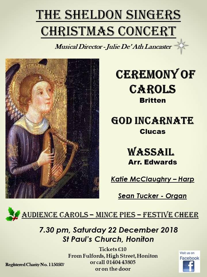 Sheldon Singers gave their audience at St Paul’s Church Honiton a real carolling feast on 22nd December. The concert showed off the versatility of the choir and also gave a rare opportunity to hear the harp played as a solo instrument.