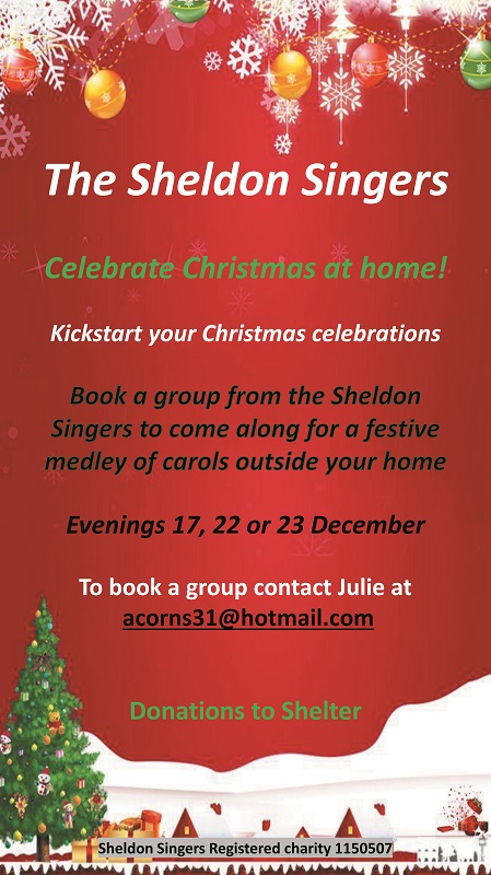 However, taking into account the current restrictions, we would be delighted to offer a small group of singers to sing some of your favourite carols in four-part harmony outside your home. You don’t need to go anywhere – just snuggle up with a glass of your favourite tipple and enjoy twenty minutes of festive cheer from a quartet of singers from this acclaimed choir. We would just request a donation to the charity Shelter who will be working extra hard this year to help those in need.